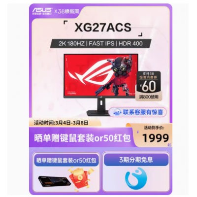 首页 > 智能 > 智能数码 > ROG XG27ACS绝杀27青春版 显示器电竞180Hz 27英寸2k显示屏幕电脑